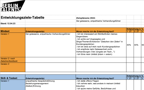 BerlinTALENTS® ist eine firmenübergreifende Qualifizierung mit maximal 16 Teilnehmer*innen in der ganzheitlich in 4 Phasen und auf 5 Lernebenen gearbeitet wird. So entsteht ein vertrauensvoller Kontakt und die erlernten Kompetenzen können direkt – im Austausch mit den anderen Teilnehmer*innen – aus verschiedenen Denkrichtungen und Blickwinkeln reflektiert werden. Dies erleichtert den Praxistransfer in den Arbeitsalltag.